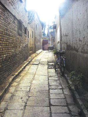 巷子渐走渐深,巷口的喧闹渐渐被抛到了远处,凉飕飕、阴森森的寂静迎面扑来,恍惚间,你会有一种穿越时空隧道的感觉。如果你不收住脚步,继续往巷道深处走,原本平直的巷道忽然急急地转了个弯,你会觉得如置身清风拂面的魏晋,或雍容大度的汉唐时代。那种愈走愈深沉的宁静和寂寞,以及偶然从巷道另一头悠闲踱来的一两个行人,会使你陷入一种迷茫,你无从知晓自己到底是身处闹市,还是在天高地远的乡村漫步。于是,你放慢了脚步,原本烦躁不安的身心像经历着一次醍醐灌顶般的洗礼,不思尘世,不念六根,只是静静地承受着古巷深处弥漫着的轻松和宁静。这时你才会明白,祖辈们依恋不舍的这幽幽古巷,原本是安放疲惫心灵的好去处。
