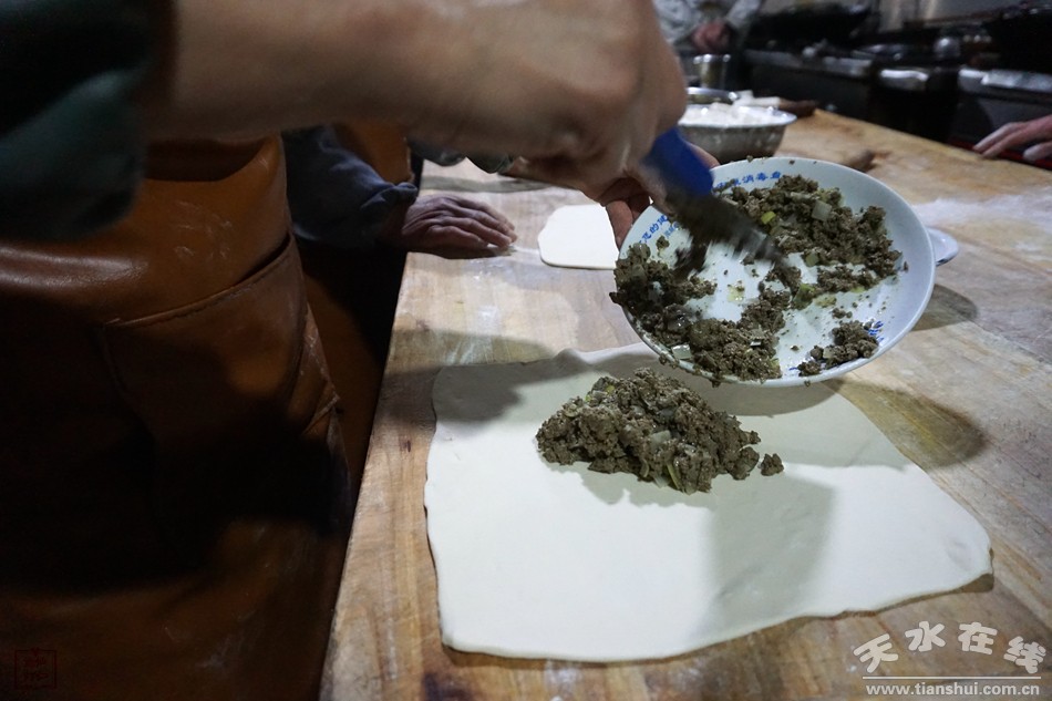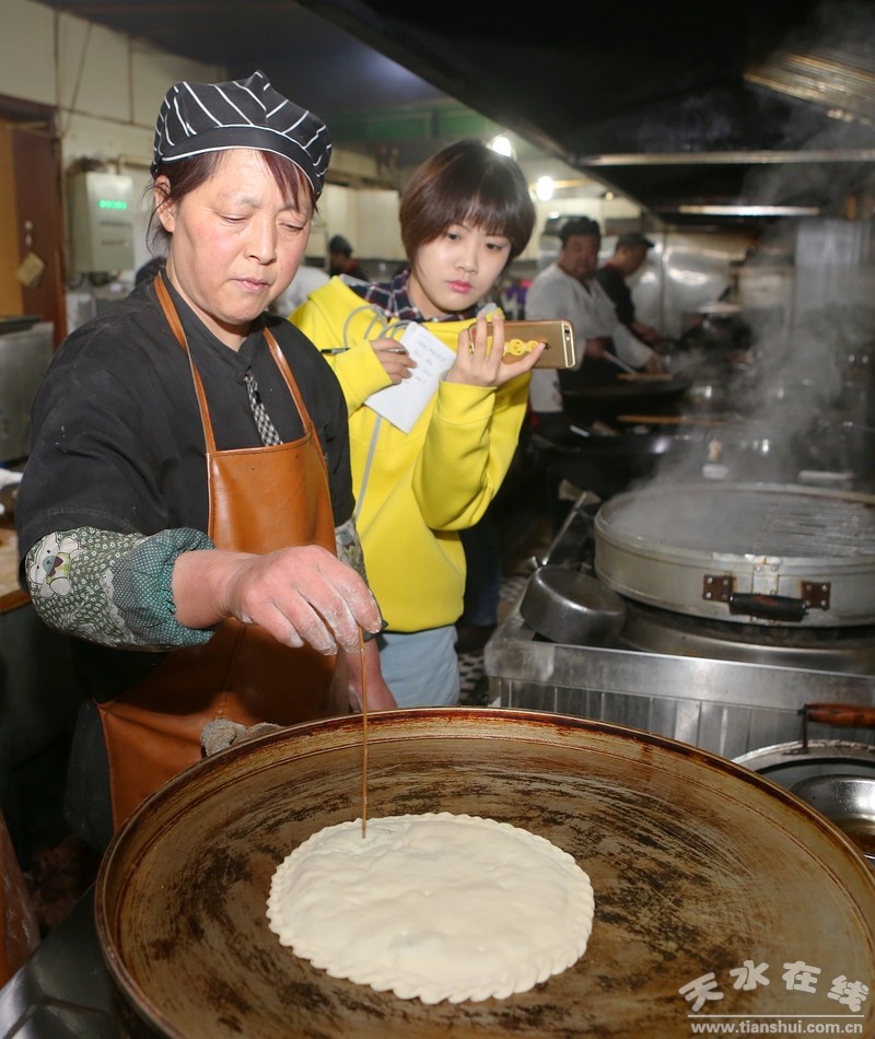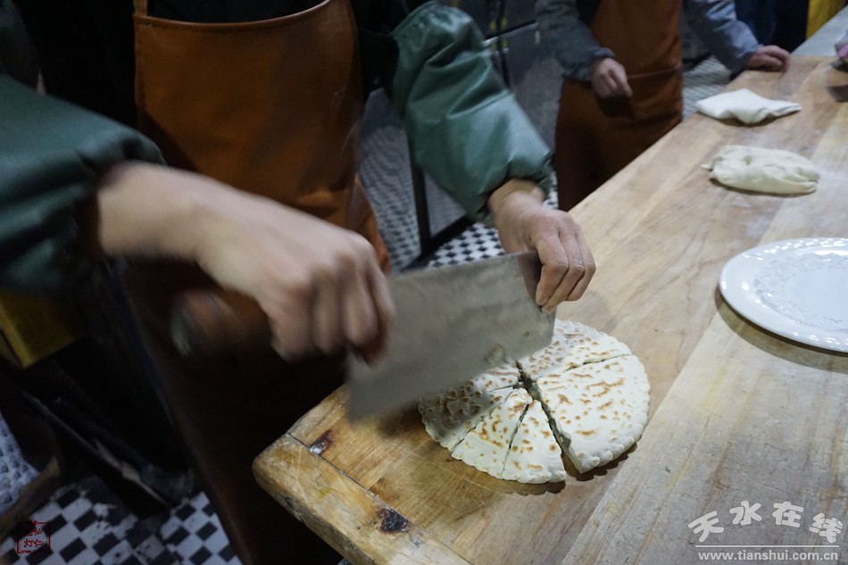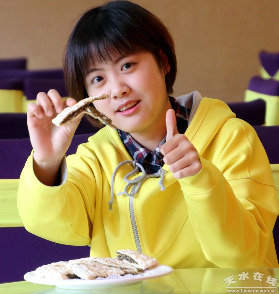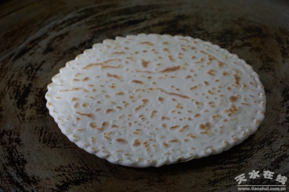 热腾腾的麻腐饼刚一上桌,马正荣就提醒小编最好趁热吃,因为夹了炒过的馅料,放凉后烙饼容易变软,口感会有所影响。烙好的麻腐饼看起来酥脆可口,咬一口下去,却出乎意料的馍瓤绵软,满口溢香。麻子独特的清香和饼子的麦香交融在一起,不需要佐以蘸料,就能让人食之不腻,回味无穷,那是除了天水外在任何地方都吃不到的美味。尤其在初春乍暖还寒之时,能吃上一口香气诱人的麻腐饼,让人不禁感叹,从制作麻腐到烙饼出锅,这三个多小时真是没白等!