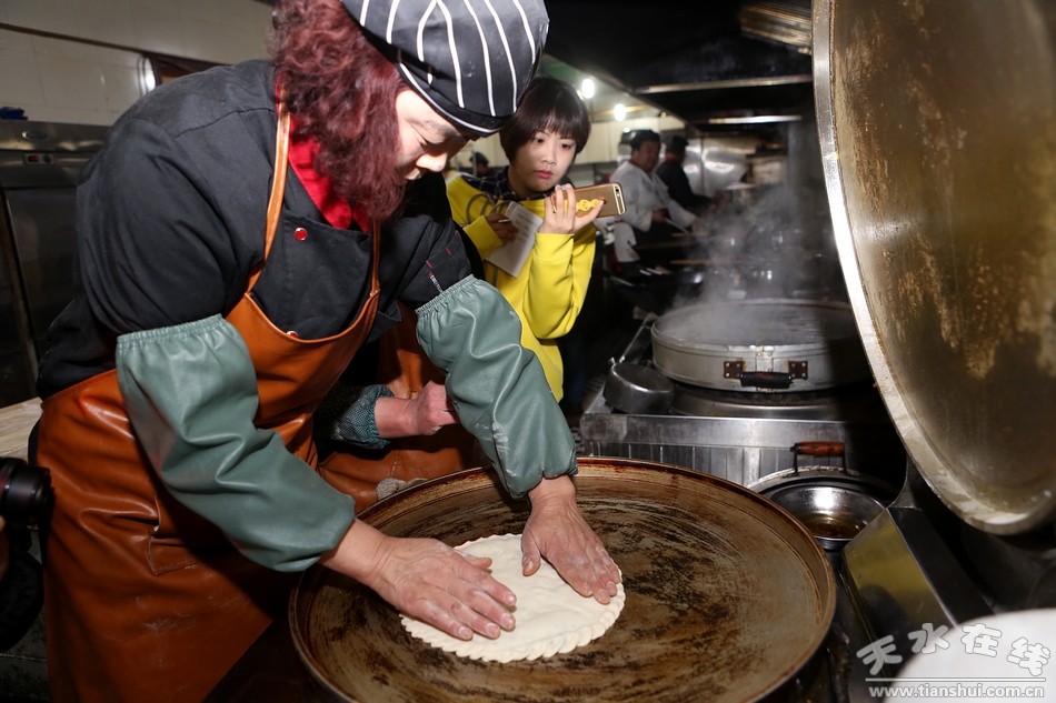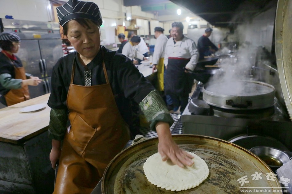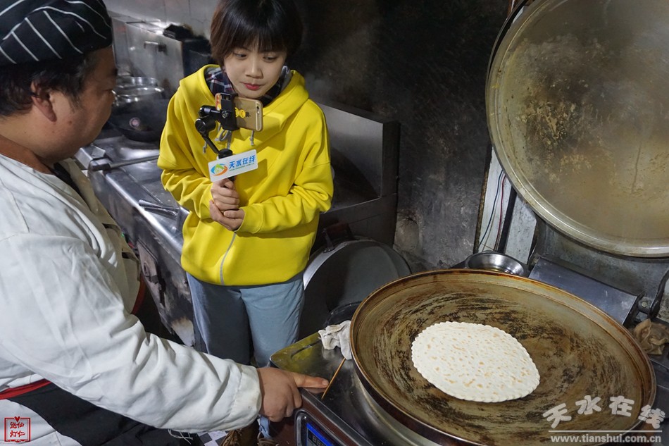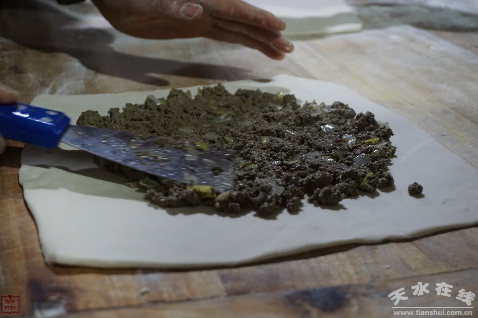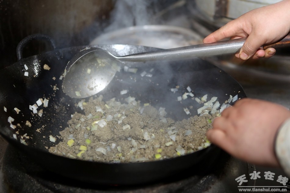 热腾腾的麻腐饼刚一上桌,马正荣就提醒小编最好趁热吃,因为夹了炒过的馅料,放凉后烙饼容易变软,口感会有所影响。烙好的麻腐饼看起来酥脆可口,咬一口下去,却出乎意料的馍瓤绵软,满口溢香。麻子独特的清香和饼子的麦香交融在一起,不需要佐以蘸料,就能让人食之不腻,回味无穷,那是除了天水外在任何地方都吃不到的美味。尤其在初春乍暖还寒之时,能吃上一口香气诱人的麻腐饼,让人不禁感叹,从制作麻腐到烙饼出锅,这三个多小时真是没白等!