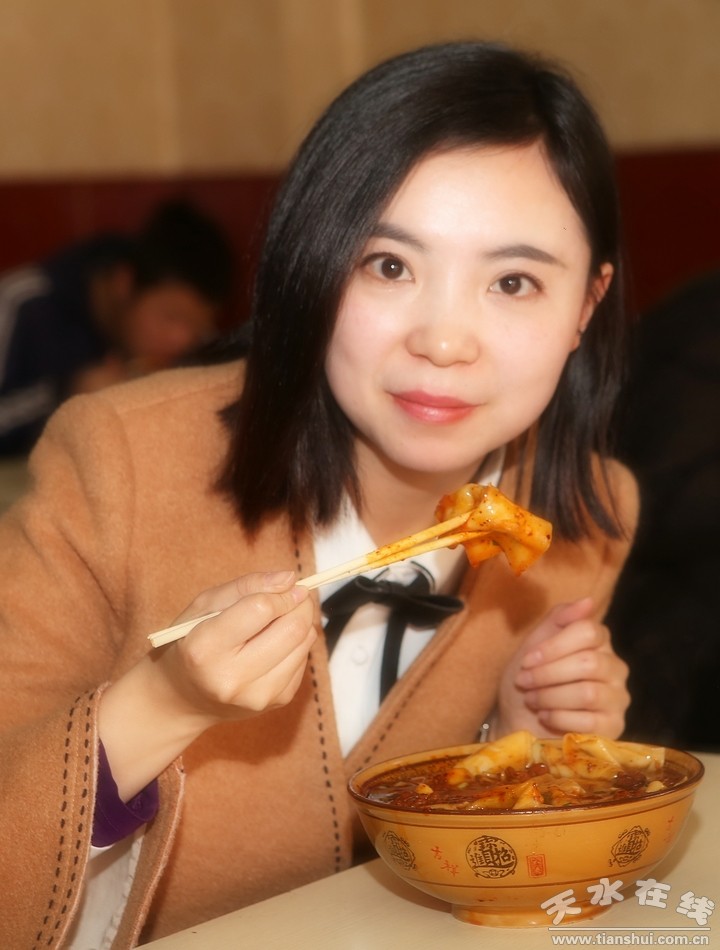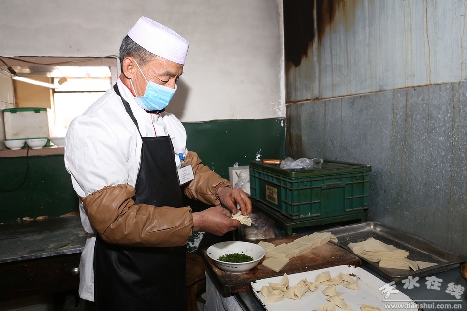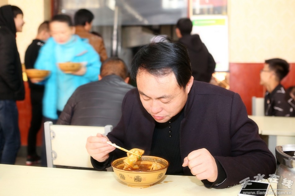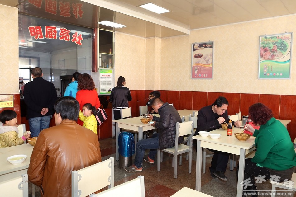 中午十一点左右,餐馆里顾客逐渐稀少,清水扁食的黄金享用时间已接近黄昏,把扁食当作最美味的早餐来享用就是清水人特有的“格调”。每天早晨,清水城的人们相聚在扁食馆里,尽情享受舌尖上美味的同时,也天南海北的谈论着时政要闻,或是家长里短,这便是清水县城一项独具特色的人文景观。(备注:在线小编出镜服装由位于秦州区中华东路的“天使时创”服装店提供。) |