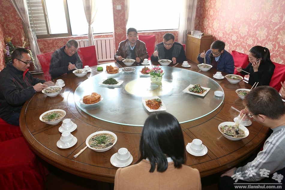 晌午时分,清水县城的大街上车水马龙,人们赶着回家享用午餐。位于县城中心的田园酒店门庭若市,里里外外挤满了笑逐颜开的人们,小编走近看了看,原来酒店里面正在为一对新人办婚宴。早就听说这家酒店的烩牛肉是清水的一绝,小编和几个小伙伴也跟着一众亲朋好友们一起走进酒店,品尝美味的烩牛肉之余也来沾沾这对新人的喜气。