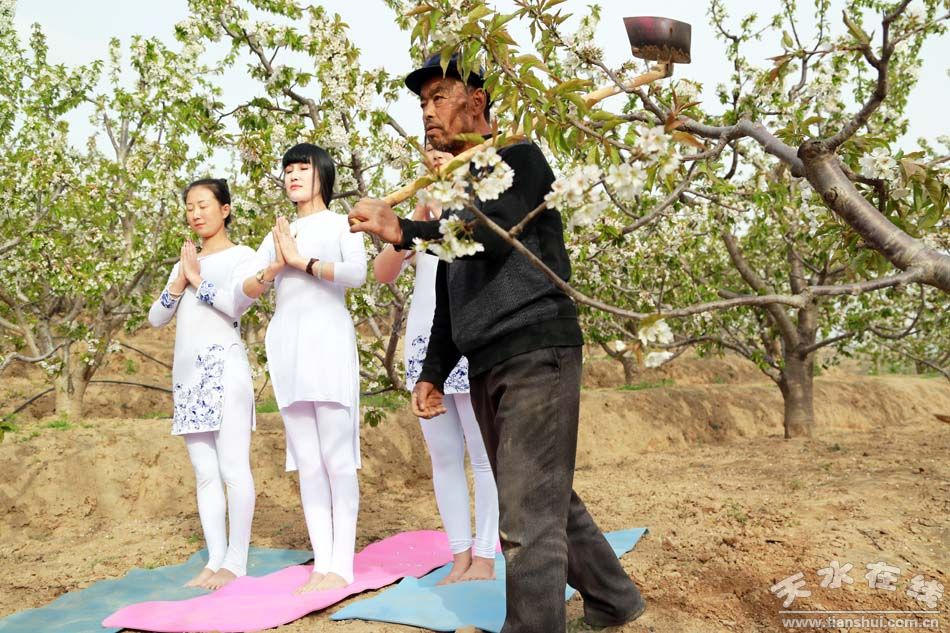 (在烟铺樱桃花海练瑜伽打太极 365bet现金开户摄于4月16日)
