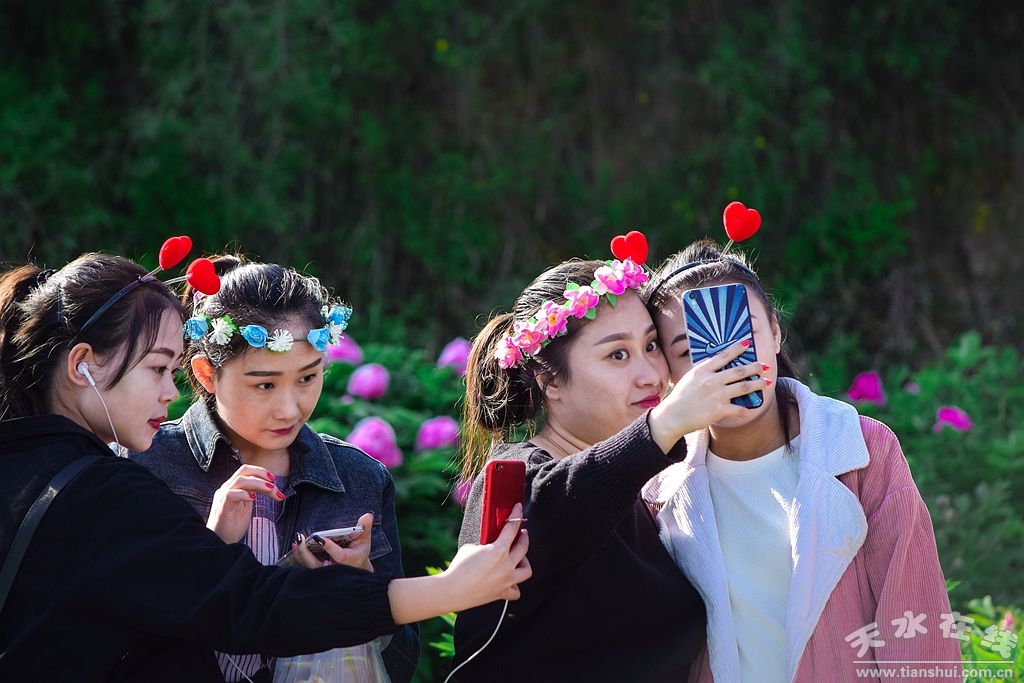 古诗云:庭前芍药妖无格,池上芙蕖净少情;唯有牡丹真国色,花开时节动京城。在秦州区南山的豹子沟珍稀植物园,园内的牡丹花已是竞相开放,红的似锦,粉的像霞,白的像雪,红色的雍容华贵,白色的如雪似玉,紫色的丽质无双,朵朵争奇斗艳,株株姹紫嫣红,来赏花观景的游人络绎不绝,有不少市民穿梭在园内,三五结伴成群游园,细心挑选角度,驻足观赏拍照,定格美好瞬间。