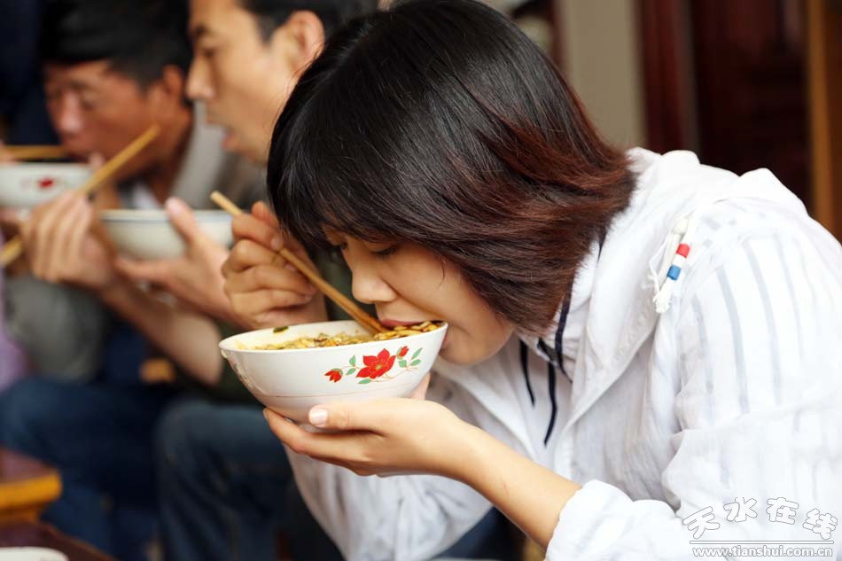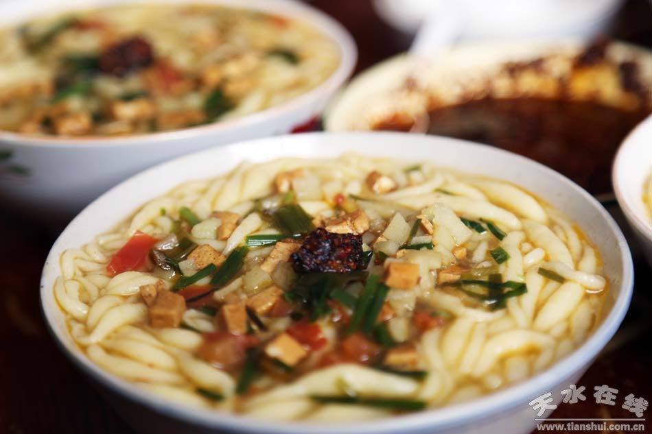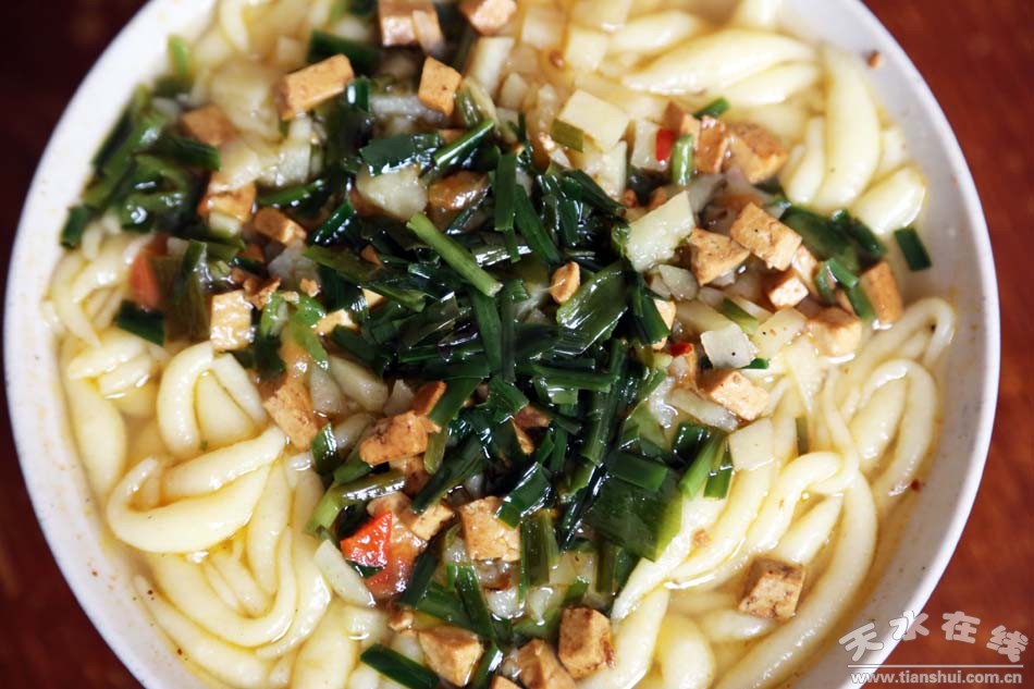 筋道滑嫩老少皆宜的天水锅鲰,养育着世世代代勤劳的羲皇故里人们。远在异地他乡的天水人想起家乡的一碗锅鲰,总是勾起浓浓的乡愁和无尽地思念。尤其是在大夏天里,来两碗清凉滑溜的锅鲰,受活的很。“处处天涯处处家,来也天涯,去也天涯,天涯无地种桑麻;逢人便问家乡事,笑也由他,骂也由他,道是无家却有家。”我们用最原始的方式——味觉,在异乡怀念家乡故土的山川河流,亲朋友人。这种滋味,比乡愁难熬。