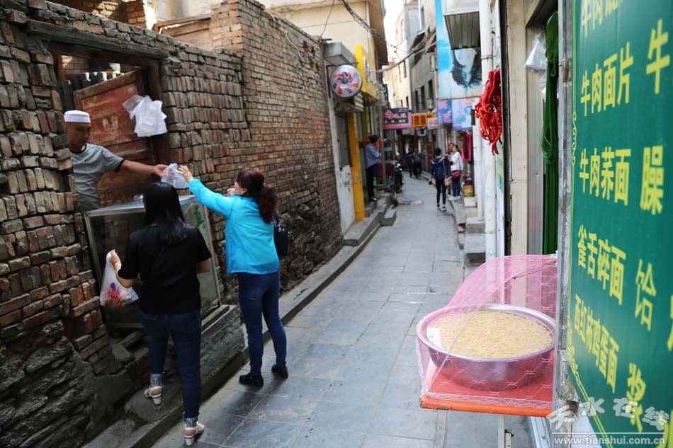 后寨古巷就这样随意在繁闹的大街边徜徉着,脚下一片轻盈。绚烂的阳光普洒在这片鳞次栉比的小阁楼之间,那突兀横出的飞檐,那高高飘扬的商铺招牌,那川流不息的行人,那一张张恬淡惬意的笑脸,无一不反衬出天水居民在泱泱盛世里的自得其乐。