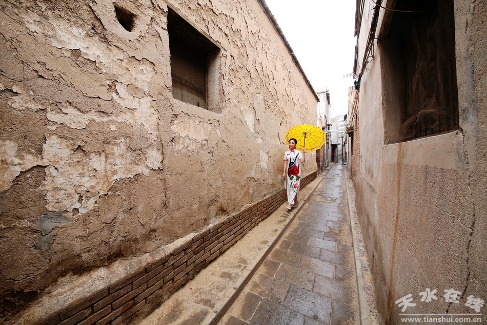 回眸望去,古巷是安宁的,但至今依然涌动着难以抑制的活力;古巷是微小的,却分明让人感受到了它的悠久历史和博大精深。那金黄的墙,深灰的瓦,墨青的路,每每一处无不渲染着时代的记忆,寄托着天水人儿时的回忆。它们是这座古城里最鲜活的历史标签,就像一幅幅淡然优雅的水墨画,在烟雨飘渺中,远远近近,浓浓淡淡,给古城天水的繁华时时刻刻增添着一份宁静与温馨。