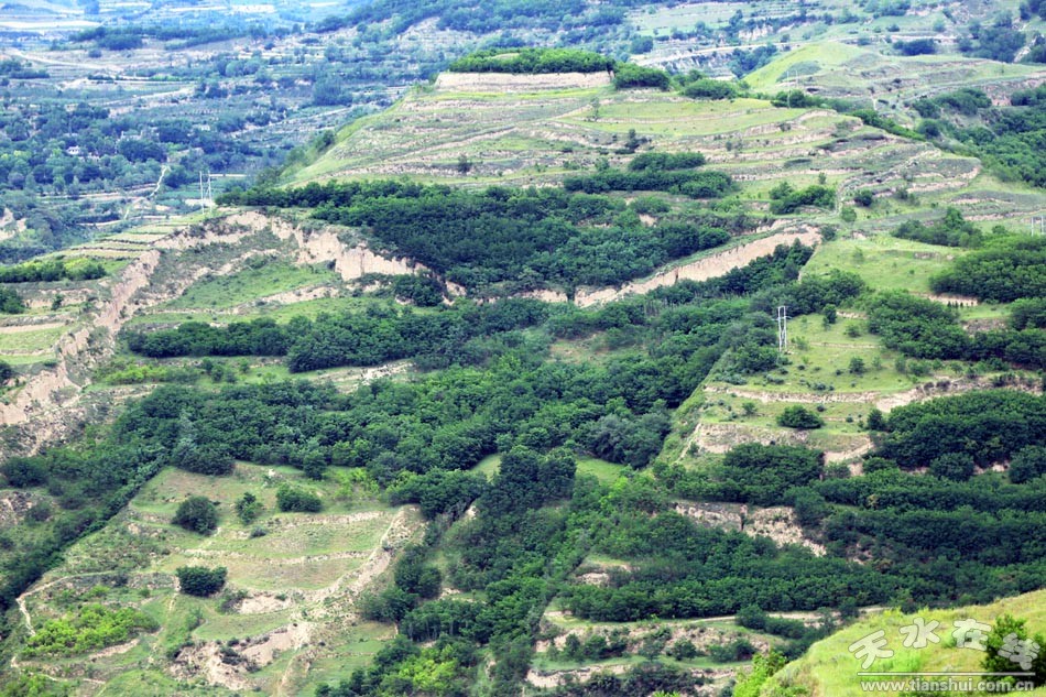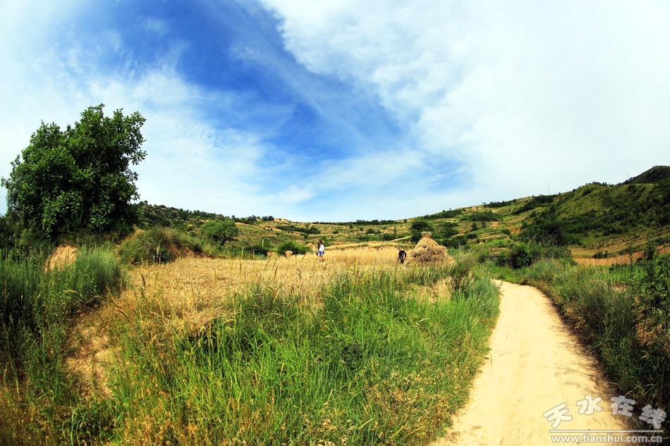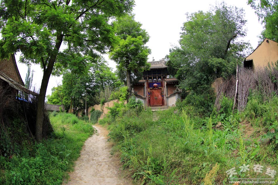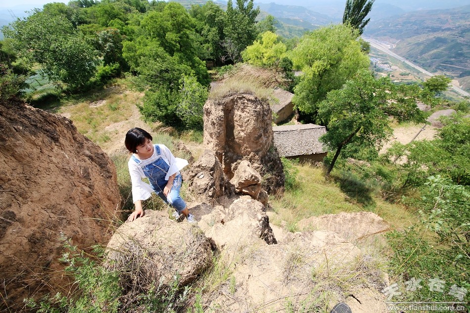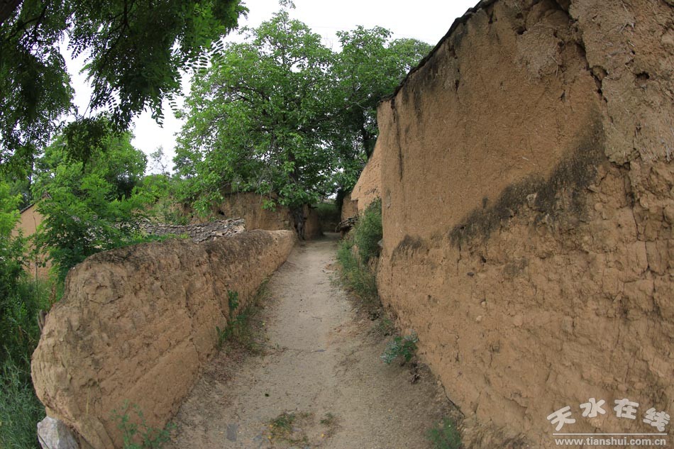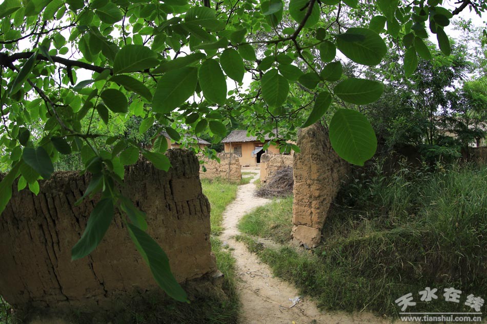 登上点将台俯瞰整个古村,一座座错落破败的农舍,一片片杂草丛生的打麦场,像零散的积木,又像孤独的守望者,就这样依偎在夏花的臂弯里,那么小,那么僻静。远远望去,延绵的堡子山与西秦岭山脉相连,半山明亮,半山阴沉,山顶古树苍翠,草木繁茂;极目远眺,东面和西面两山上皆有一古堡,与曹操堡遥相呼应,静悄悄地低伏在光影之中。山脚下,南沟河、黑河沟从堡子山两侧流过,河水清澈翠绿,如两湾碧碧的玉带镶嵌其中,仿佛一对温柔可爱的姐妹,依偎在母亲的身边。它们静静地流淌,像一面历史的镜子,带我们穿越到古道征途。