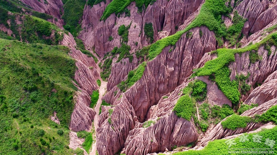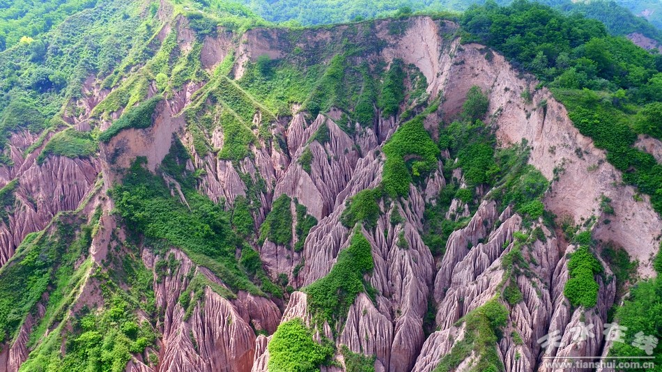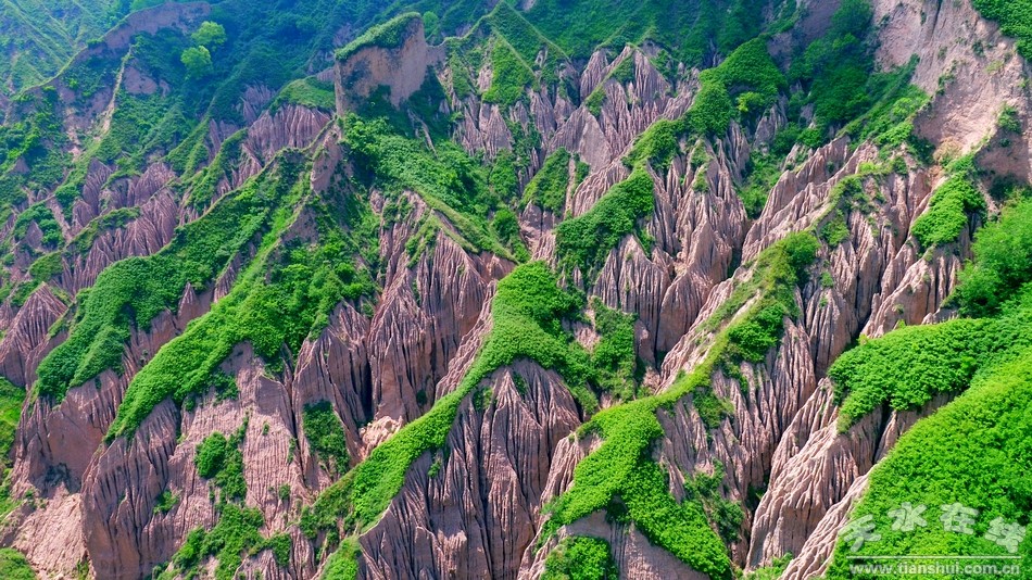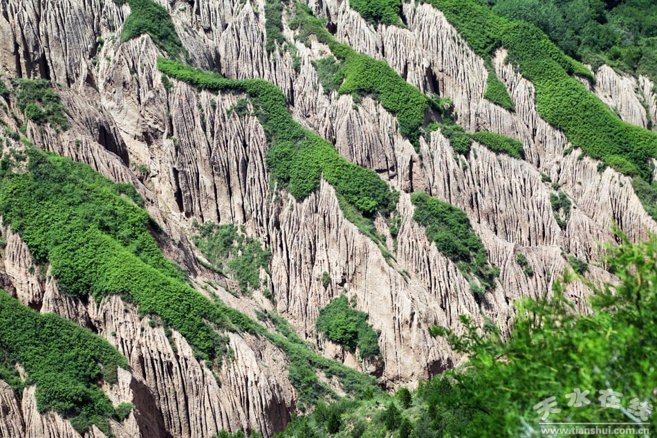 曾有一位画家说过:“石林是凝固的雕塑,而土林则是流动的油画。”土林是一种独特的流水侵蚀地貌,是水土流失现象造成的“美丽错误”。在天水就有这样一处极具神韵的自然奇观,它栩栩如生,形态逼真,精致细腻。同时它又别具一格,给人一种原始的美,粗犷的美。它就是身在大山,却又藏在城边人未识的天水土林。