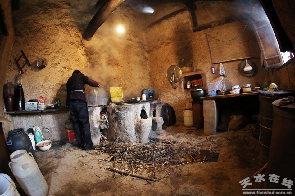 做馓饭的,是梅江村朱家大院的女主人,看得出,慈祥、淳朴。一头乌黑的短发遮住了耳朵,脸盘饱满圆润,肤色微黑,两腮上漂浮着淡淡的红,微胖的腰身穿着深色的布衫子,躬着身靠在黄泥土坯垒成的灶台边。灶台宽阔,台面子乌黑油亮,两口大锅套一口小锅,小锅里是炒酸菜,大锅里是馓饭。老人浅浅地笑,一手撒着玉米面,一手握着长竹筷搅动,馓饭锅里升腾着缕缕热气,热气飘散在半空中,像雾又不似雾。炉膛里的柴火旺旺地燃烧,地上绵软的柴草随意摆放。这场景,会碰撞到许多人内心微妙的疼痛和幸福,让眼圈发红,心里温热。