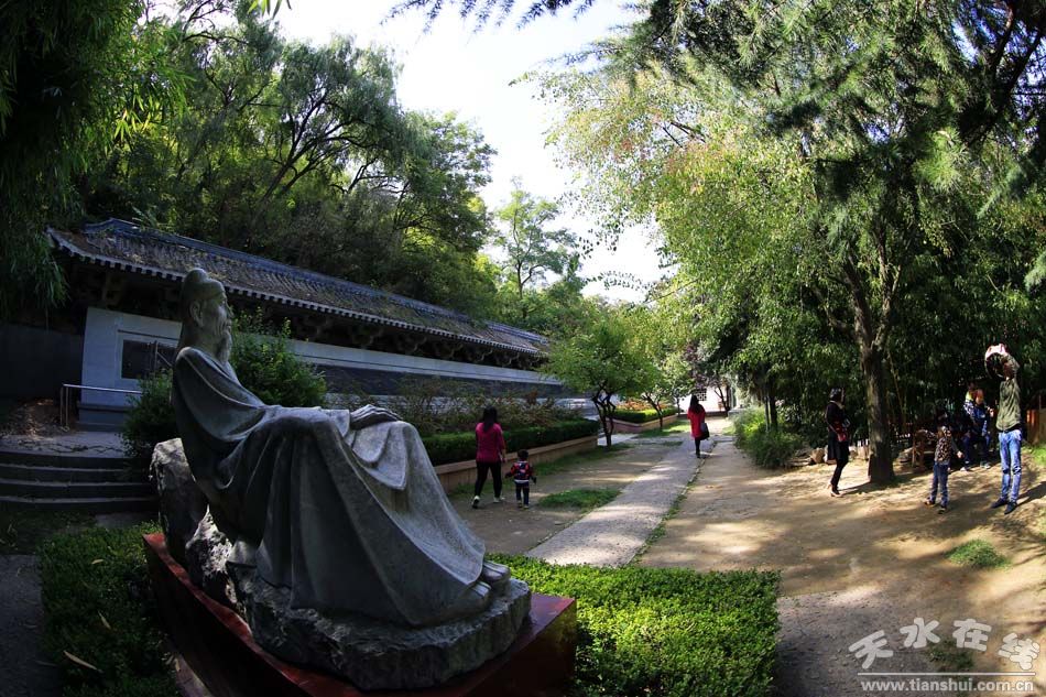 不过,天水毕竟乃中华第一古城,庸常日用之外,圣贤风度、帝王气象亦氤氲弥漫。“山头南郭寺,水号北流泉。老树空庭得,清渠一邑传。秋花危石底,晚景卧钟边,俯仰悲生世,溪风为飒然”,诗圣杜甫《秦州杂诗》里吟咏的老树,今天依然在,只是更老了。南郭寺古柏,植于春秋时期,与孔子同龄。杜甫公元759年流寓秦州,老树1300岁,而今又过近1300年。斯人虽已殁,千载有余情,是想象的感慨,在天水,却用一棵又老了1300年的树,把时光鲜活地流过来。