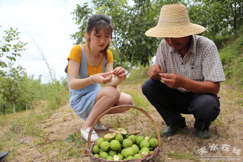 前年秋天,在北京街头,遇到郊区农民骡子拉平车卖青皮核桃,如见故人一般,不顾25元一斤的天价,买了两斤。然后特买小刀一把,自剜自食,“旁人不知余心乐,将谓偷闲学少年”。岂料,不久即来天水挂职,所见的,是漫山遍野的核桃树,而且,已经从农家美食,发展成脱贫致富的大产业。青皮鲜核桃、干核桃、完美的帕菲科特核桃露,都插上微信等时尚传媒销售手段的翅膀,随现代发达之物流配送系统,远销海内外,沿一带一路,回到它向所从来的久远家乡。“绿荫不减来时路,添得黄鹂四五声”,我家门前清水流(备注:我家门前清水流为清水县县歌歌名),天风水雅的秦腔,也在其中婉转绵延。(本文专为清水青皮核桃而写)