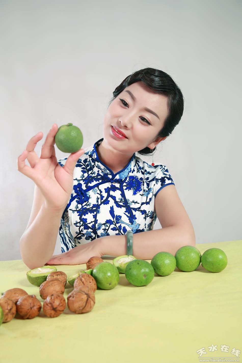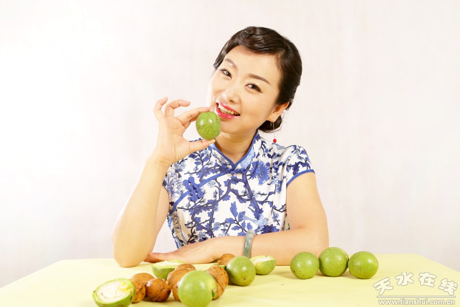 核桃不成熟时,仁外面的薄皮发苦,不能吃,但撕下非常利索。轻轻揭开黄衣,又嫩又白的核桃仁就出现了。放进嘴里一咬,脆、嫩、甜,还有丝丝青草气息,一点点汁液在口中游走。把几大片嫩核桃仁一起放在嘴里大嚼,真是过瘾!这就是“鲜食”了。前不久,清水县请著名秦腔演员、新科戏剧“梅花奖”获得者袁丫丫代言的“青皮核桃”,就是这味道感觉。我生长的山西长治,为黄土高原最高处,古人形容“与天为党”,故名“上党”。本来一直以为天是苍天之天,现在想来,也是天水之天了。我的家乡和天水,不为邻,却为党,性相近也,习亦相近也,风俗文化,相似处殊多。自小耳濡目染的,是上党邦子、上党落子,和秦腔有类同者。自兰州读书,二十年来,秦腔入耳不少,感觉既如“关西大汉,铜琵琶,铁绰板,唱大江东去”,又似哀婉缠绵的秦妇吟。核桃,正有秦腔的品质。肉的青皮包裹着的,是坚硬木质的壳,壳里面,又是嫩脆的仁。柔而刚、刚而柔,层层各有洞天。人们常宣传核桃全身都是宝,其实,更本质的,是它和所生长之土地血脉气韵的通连。