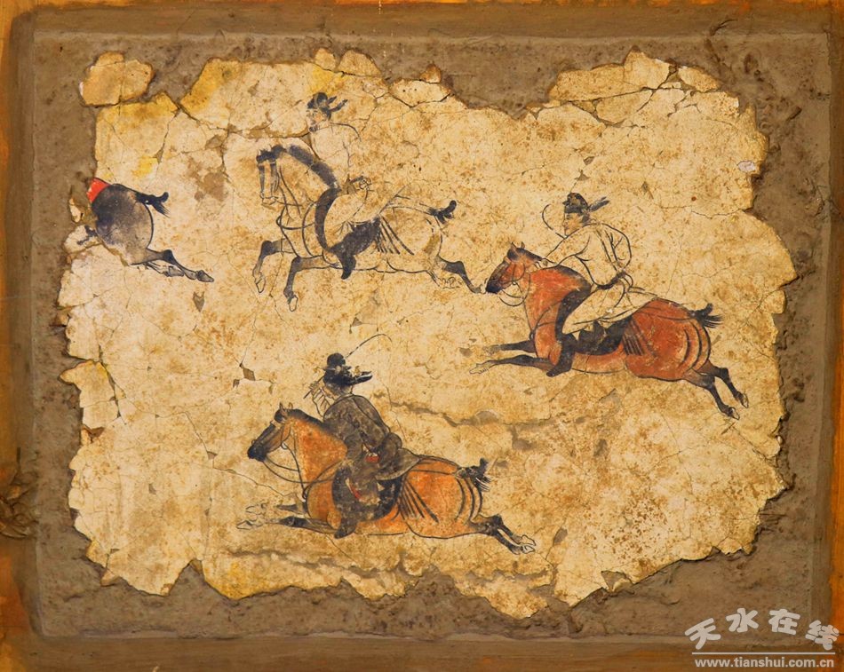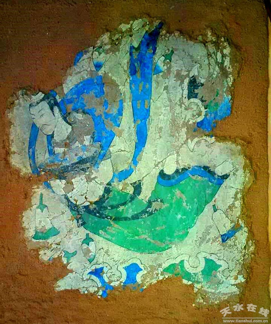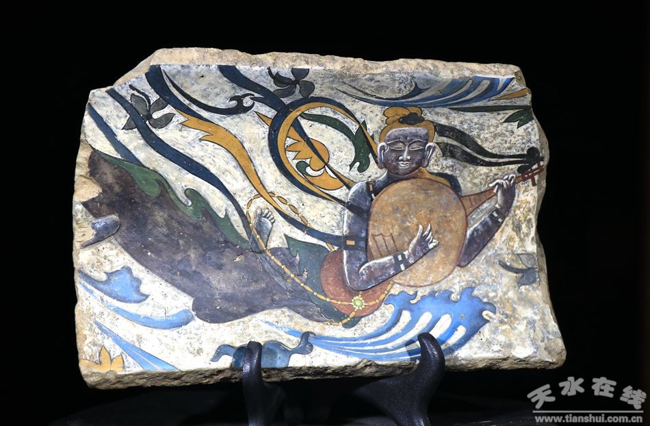 中国四大石窟,甘肃居其二,且均既有雕塑,又富壁画。敦煌壁画被外国人剥下运走,乃中华文化揪心之痛。文物壁画一丝一毫不可再动,文化艺术却应弘扬推广,天水踪迹“泥皮画”应需而生。完全恢复敦煌、麦积山壁画制作原始工艺流程。清米汤和泥,掺上麦壳,打成泥板。以矿物颜料,将石窟壁画之一小部分,绘在泥板上。原料、程序既一如古代,绘制亦生动如初,几可乱真也。装入框中,置之案头,随时可见菩萨低眉、飞天翔舞。