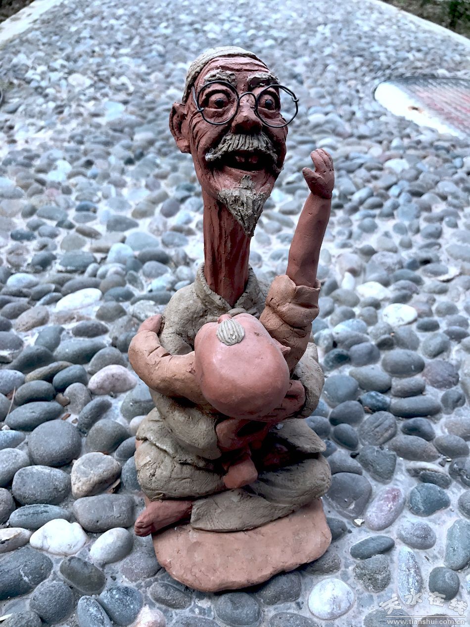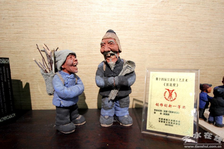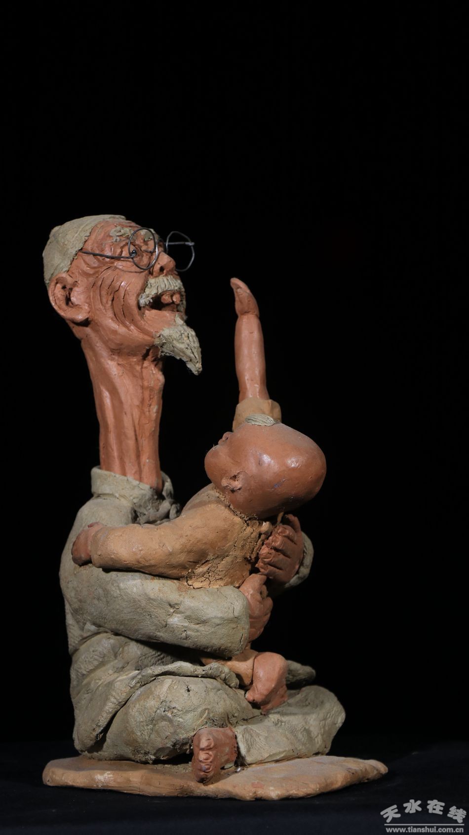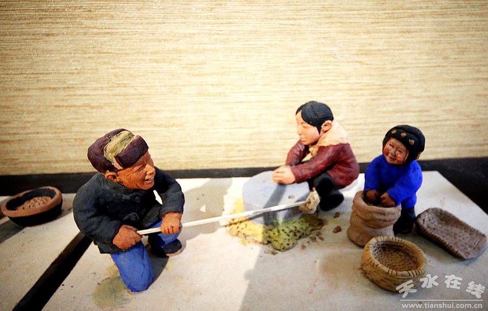 天津泥人张、无锡惠山大阿福,名满天下,我上小学二年级第一学期,翻开语文书封面,第一眼看到的,是一个小朋友高高地举起篮子,一群鹅围着。初看以为是照片,学课文,第一句话就是“泥人张真会捏泥人,连我弟弟和鹅打架都捏了出来。”到66文创园,您就会看到天水的泥塑——泥人赵。其实,天水泥塑和中华文明一样久远。大地湾彩陶的第一道工序,就是泥塑。泥人赵生活在农村,和天水的泥土浑然一体,白天下地刨土种粮,晚上灯下抟土造人。虽非当代女娲,也用一水一泥,向祖宗乡贤致敬。所以,天水泥人赵和天津、无锡都不同,他们是塑绘一体,细致精微,彩绘丰富艳丽,满满富贵人家格调。泥人赵,却“土得掉渣”,不上任何颜色,人物也细而不致,没有光滑的打磨,仿佛一任黄泥赋形,粗砺自然,完全是北方村野气息,带着素朴不拘的坦荡。所塑内容,俱为农村生活,鞭牛耕地、汲水灌园、向阳闲话,一组雕塑,细致准确、具体而微地把做豆腐各道工序再现出来,观者往往“看图说话”,绘声绘色讲诉自己做豆腐、吃鲜豆腐的往事,如见故人。
