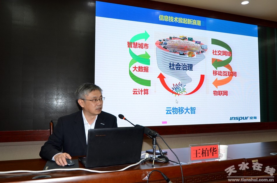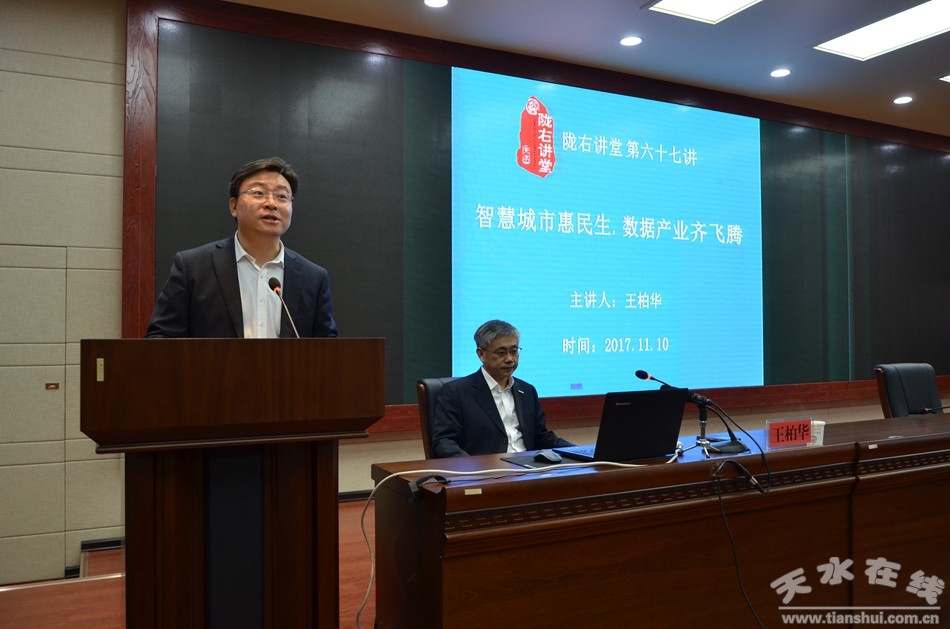 (浪潮集团执行总裁王柏华先生做客天水陇右讲堂,主讲《大数据与智慧城市建设》。)